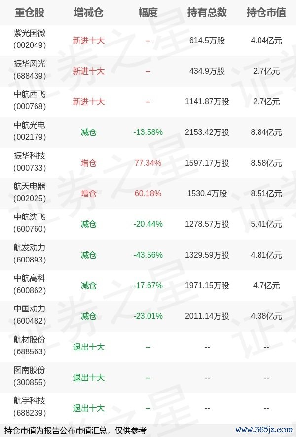 本站消息金砖财富,4月22日易方达基金旗下何崇恺管理的易方达国防军工混合型基金公布一季报,近1年净值增长率14.94%。与上一季度相比,该基金前十大重仓股新增紫光国微,振华风光,中航西飞;其中中航光电持仓占比9.94%,为该基金第一大重仓股;航材股份,图南股份,航宇科技等退出前十大重仓股;详细数据如下: